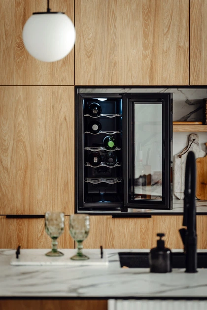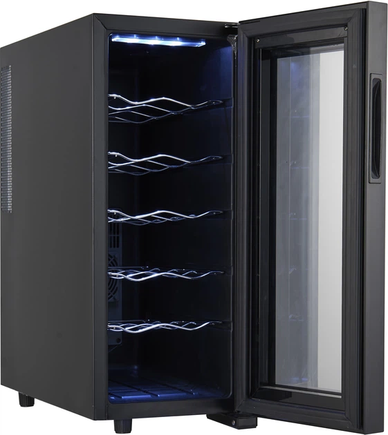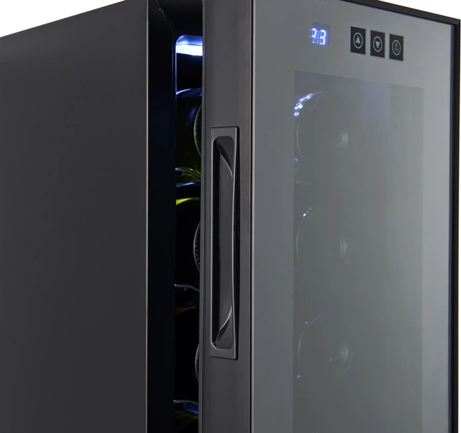 Однією з ключових переваг цього сховища є його низьке енергоспоживання, що дозволяє використовувати пристрій економно без шкоди для продуктивності. Завдяки термоелектричному охолоджувальному елементу він працює безшумно, забезпечуючи непомітне та ненав'язливе використання. Елегантна панель керування сенсорними кнопками забезпечує легке та інтуїтивно зрозуміле керування. Регулювання температури від 12 до 18 градусів Цельсія дозволяє адаптувати умови зберігання до конкретних напоїв. Крім того, освітлення внутрішнього простору камери забезпечує зручність використання, а ізольоване безпечне скло з УФ-фільтрами захищає напої, що зберігаються, від шкідливого випромінювання. Підходяще охолодження на основі технології Пельтьє гарантує, що всередині пристрою підтримується оптимальна температура. Тут використовується термоелектричний елемент, що усуває постійне дзижчання та гучну роботу приладу.